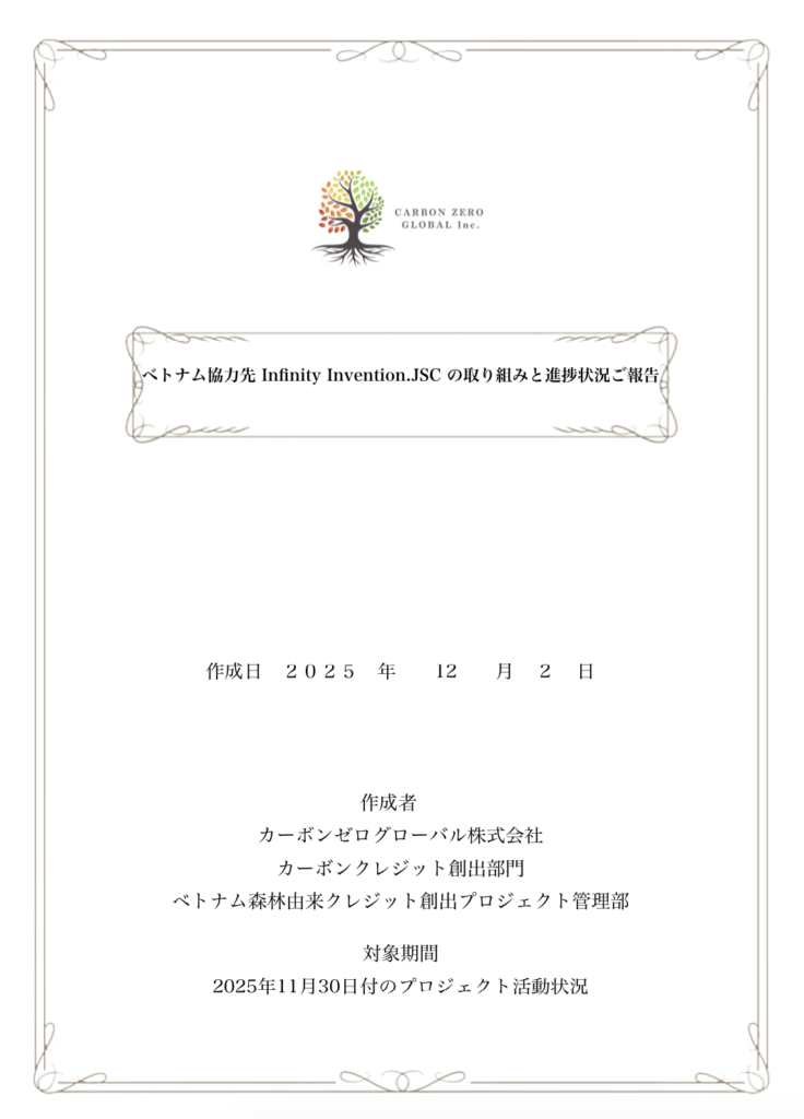 Carbon Zero Global は、「11月度カーボンクレジット創出プロジェクト活動報告書 No.2」(11/15〜11/30)の活動レポートをマイページに公開いたしました。