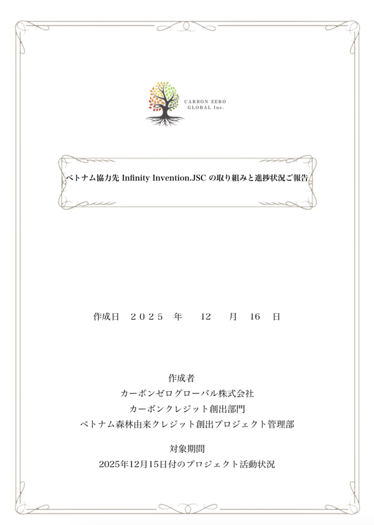 今回の活動報告は、現地での着実な進捗に加え、国際市場を見据えた戦略判断がプロジェクトの価値を高めていることを示しています。Carbon Zero Global では、引き続き透明性の高い情報開示と、将来を見据えたプロジェクト運営を進めてまいります。