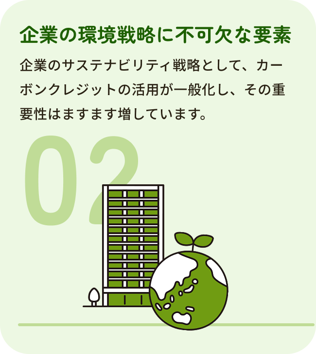 JPX(日本取引所)でも取引が始まり、カーボンクレジットを取り巻く制度や市場の整備が進みつつあります。こうした動きが本格化する前の今だからこそ、より深く知ることで、将来の可能性に備えるタイミングと言えるかもしれません。