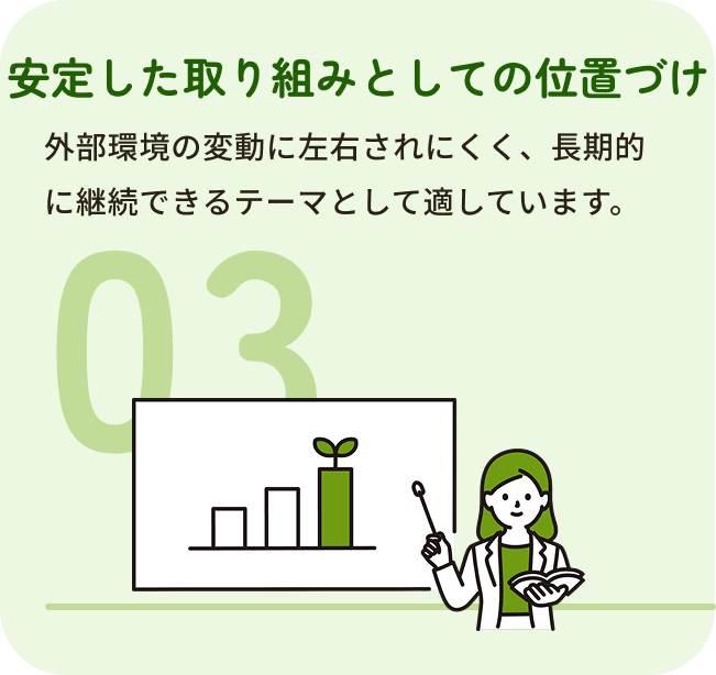 従来の不動産や太陽光発電を上回る成果が期待され、長期的に安定して継続できる取り組みとなります。
